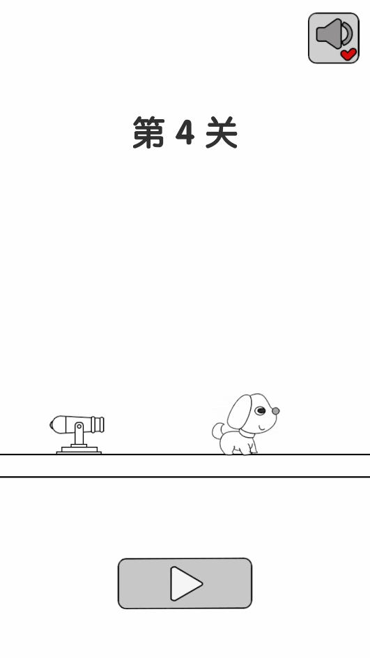 2、点击三角箭头开启闯关,此环节需让小狗从屏幕中离开方可取得胜利。