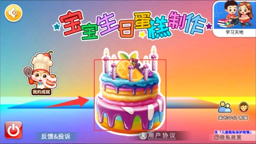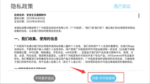 1、打开宝宝生日蛋糕制作应用,阅读并同意隐私政策后,进入应用的主界面。