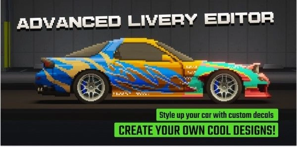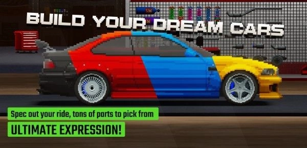 视觉焕新:以2.5D像素风格融合现代3D特效,打造复古韵味与科技感交织的独特视觉体验 硬核改装文化:涵盖数十款车型、数百种零件(包括引擎、轮胎、车身套件等),支持自由参数调校与个性化涂装定制