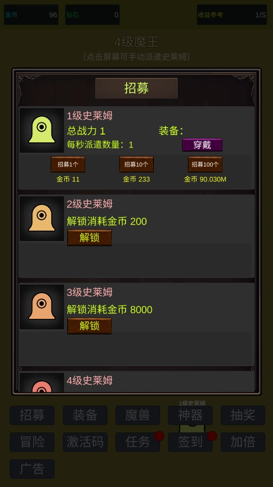 3、你还可以在招募里面选择更高等级的史莱姆。