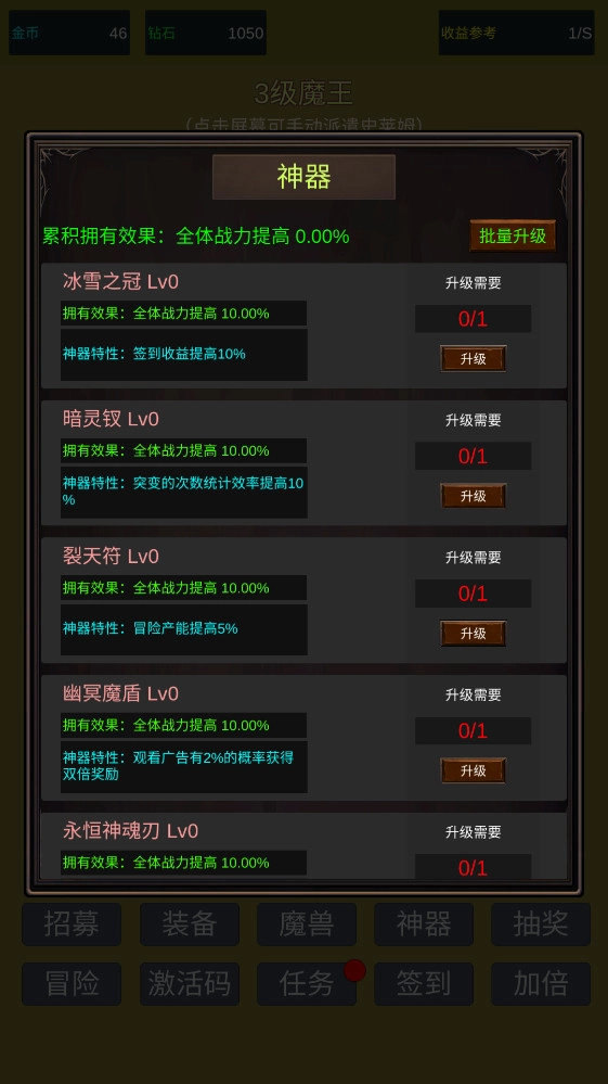 《小小史莱姆推翻大魔王》是一款集放置、养成与策略于一体的休闲游戏。在游戏中,玩家将化身史莱姆训练师,带领自己的史莱姆军团从最初的基础等级开始逐步成长,不断挑战强大的魔王,最终目标是推翻统治世界的大魔王。游戏的经济系统设计得十分清晰且平衡,玩家通过积攒金币、钻石以及其他各类材料,不仅能够增强史莱姆的各项能力,还可以解锁更多强力的道具和神器!