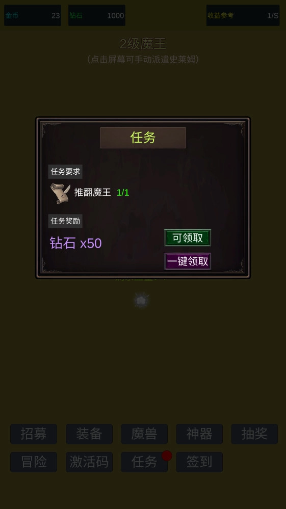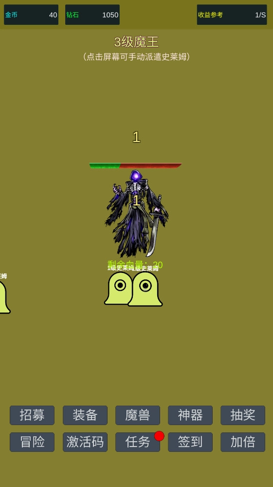 2、史莱姆会主动攻击魔王,你也能点击屏幕手动派遣它们。