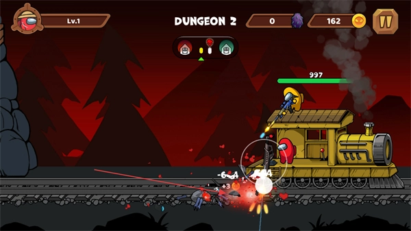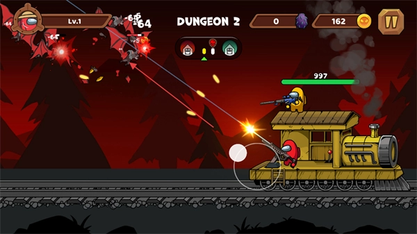 2、持续对空中与地面的敌人进行射击,迅速清理怪物集群,保障火车顺利前进。