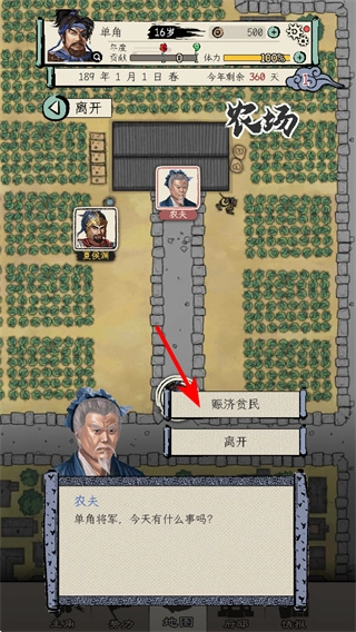 3、在农场区域点击“赈济贫民”选项即可触发民生任务,完成该任务不仅能提高民心指数,还可增加资源收益,为城市的平稳发展提供有力支持。