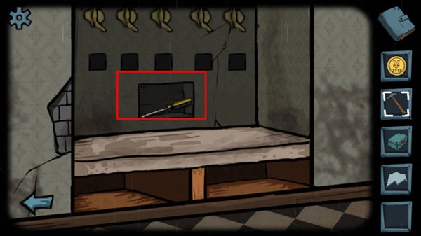 3、前往左侧房间,按照1、4、5的顺序点击挂衣钩,打开暗格后取出螺丝刀。