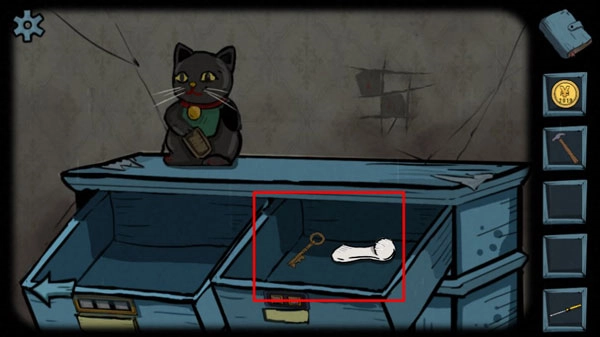 5、回到蓝色柜子处输入密码479,获取猫眼和纸条,再将猫眼安装到招财猫上。