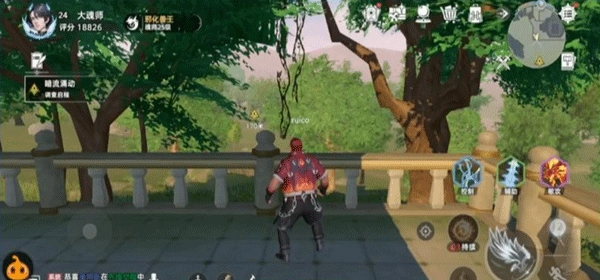 3、切换到飞行系魂师后,在跳跃的过程里再次点击跳跃按钮,就能进入飞行状态,这样可以飞到高空跨越障碍,跑图的速度也会更快!