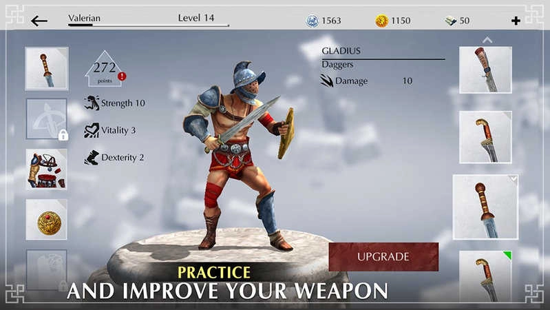 3、实战磨砺实力:在竞技场的战斗中,借助运用不同方向的技能来提升相应等级,积累经验与技能点,持续强化自身能力,逐步成长为强大的角斗士。