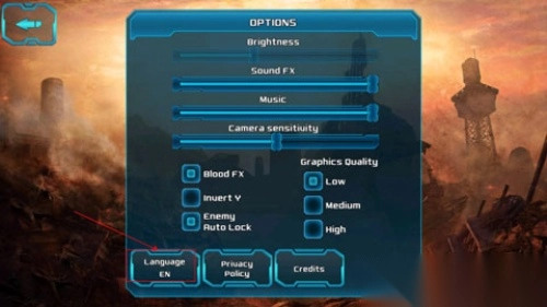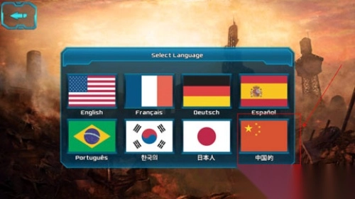 1.首次安装并进入游戏后,打开“Option”(选项)界面,接着点击“Language”(语言)栏,位置如图中箭头所示。