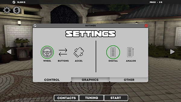 3、点击右上角的“设置”图标,即可对驾驶方式进行设置,可选择方向盘控制或者手机晃动控制。