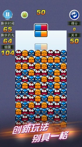 随着关卡难度逐步提升,病毒的数量与颜色种类也会持续增多,这对玩家的反应速度和操作技巧构成了极大考验。游戏内提供了丰富多样的道具,玩家能够借助这些道具来强化自身能力,或是改变病毒的颜色。