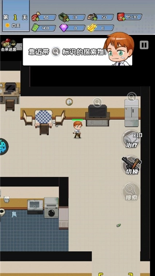 6、当游戏角色靠近带有放大镜标识的物品时,即可开展探索与收集操作。