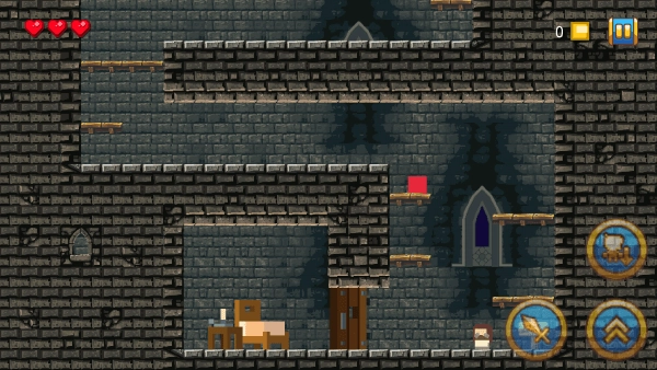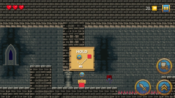 一开始你只是个红色方块,遇到物品或对话就点小剑,需要跳跃时就点向上的箭头。
