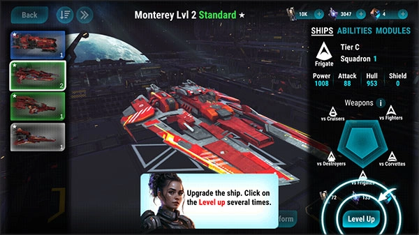2、舰船是游戏里的核心要素。持续提升舰船等级,能够增强其作战能力与资源采集效率。集中精力升级舰船,能让你更好地应对实力更强的敌人,同时获取更多资源。借助研究树来提升科技水平,有利于解锁新型舰船、更高效的资源生产方式以及更强大的战斗能力。你可以根据自身需求,优先研究那些对战斗或资源采集有帮助的科技。