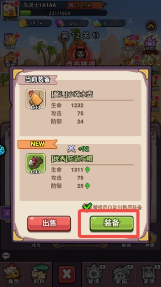 2、碰到属性出色的装备时,点击该装备,同时分解掉属性欠佳的装备。