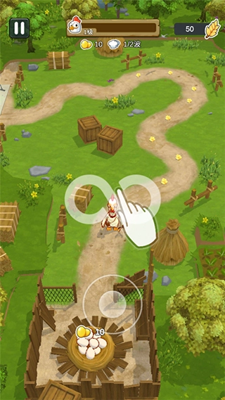 进入关卡后,玩家将化身为母鸡,通过滑动屏幕来操控移动方向。
