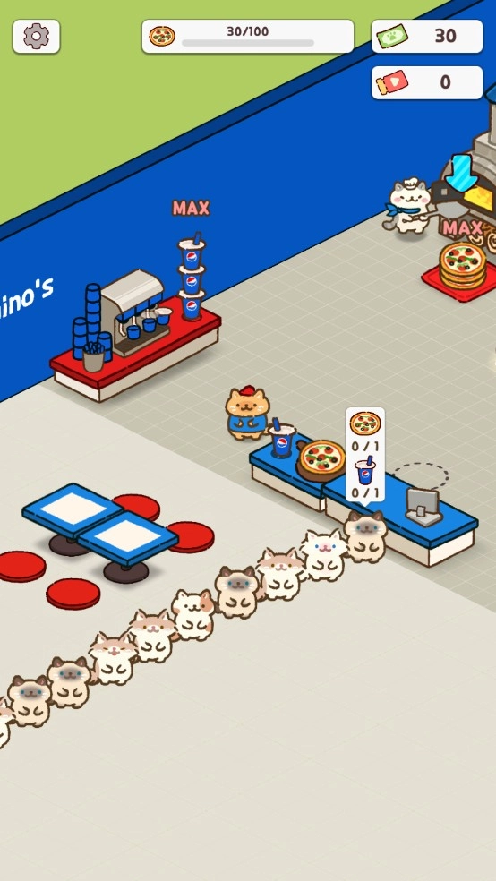 4、轻松的放置经营玩法适配碎片时间,玩家能随时随地经营猫咪披萨店,畅享游戏乐趣。
