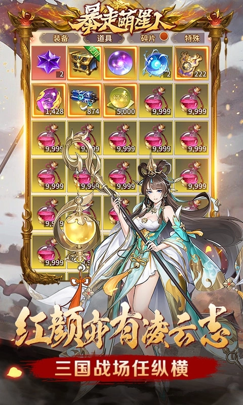 2.暴走萌星人0.05折版本里挂机收益很可观,连抽能高概率出强力武将和道具,不氪金也能快速凑齐满配置,参与三国争霸的过程十分顺畅。
