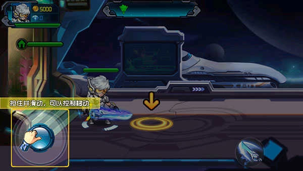 1、按住左下角方向键并滑动,可以控制主角移动。