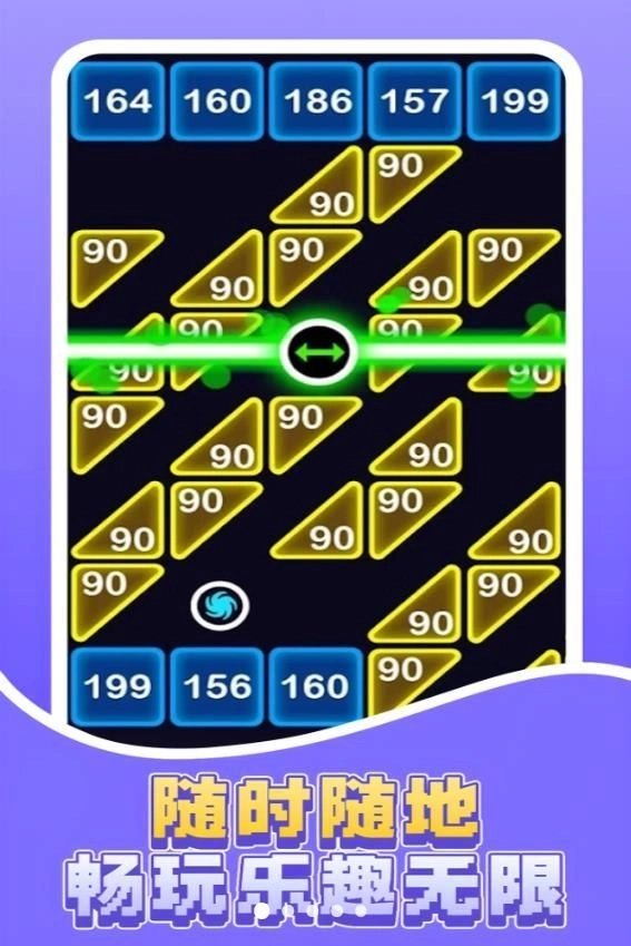 3、玩法十分休闲有趣,你可以随时加入,开启一场射击砖块的闯关挑战。