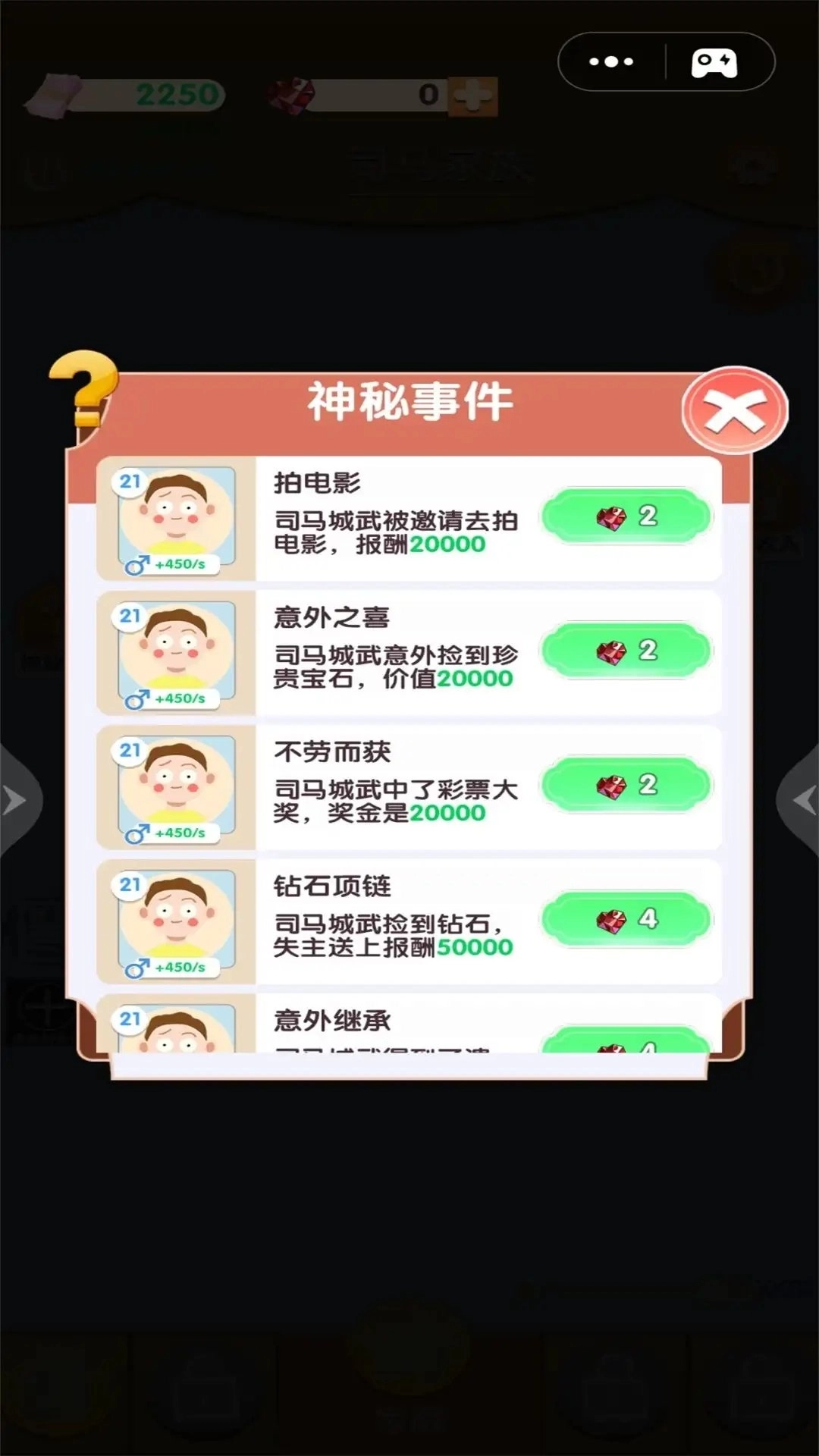 3、游戏里存在着形形色色的随机事件,你可能会得到意想不到的财富,以此来应对毫无预兆的灾难。