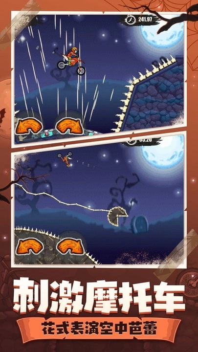 登山摩托车6万圣节是一款模拟赛车驾驶游戏,玩家每次的冒险闯关都充满刺激,多样关卡带来的体验感各不相同,十分考验玩家的操作技术,感兴趣的玩家不妨来体验一番。