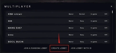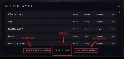 3、和好友联机时,我们选择【CREATELOBBY】来创建房间