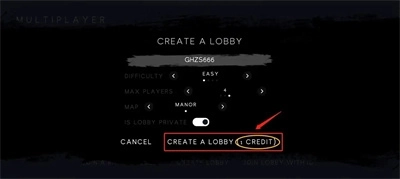 5、填写完成后,点击【CREATEALOBBY(1CREDIT)】按钮来创建房间