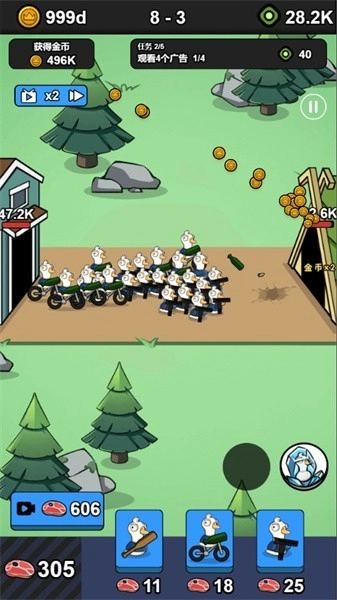 玩家在战斗过程中得合理安排召唤部队的时机,通过消耗资源来召唤小兵,战胜敌人后就能获取金币。这些金币可以用来提升各项属性,还能解锁新的时代。玩家要持续召唤更多小兵,击败敌人,最终取得胜利。