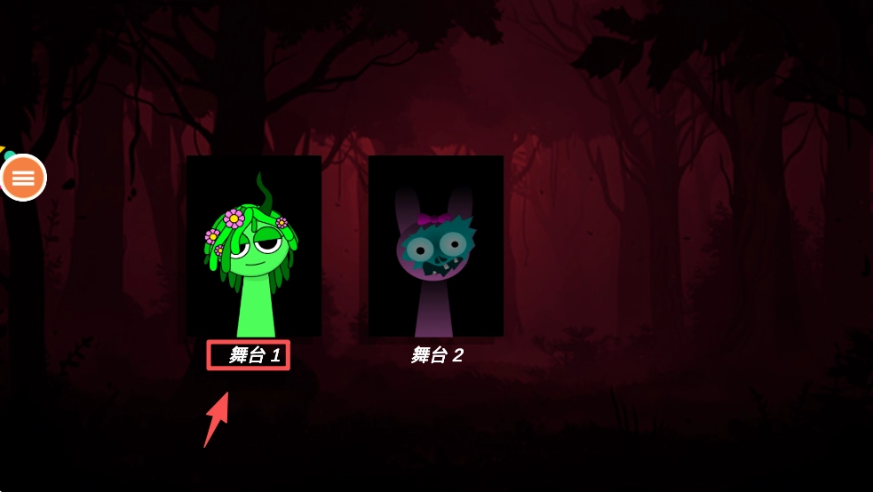1、点击“舞台1”按钮,即可进入角色选择界面,挑选角色开启装扮环节。
