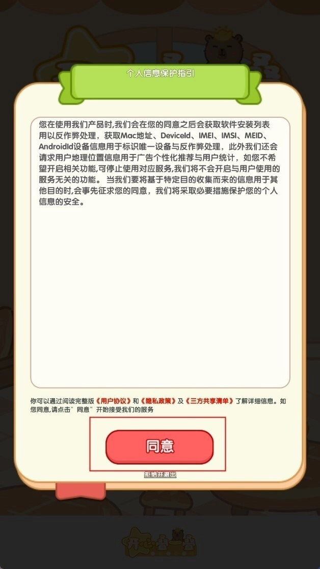 2、进入游戏后,点击“同意”按钮,进入下一步。