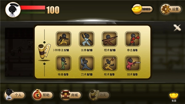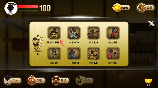 4、每种武学都有多种套路招式,少林拳法有10种。