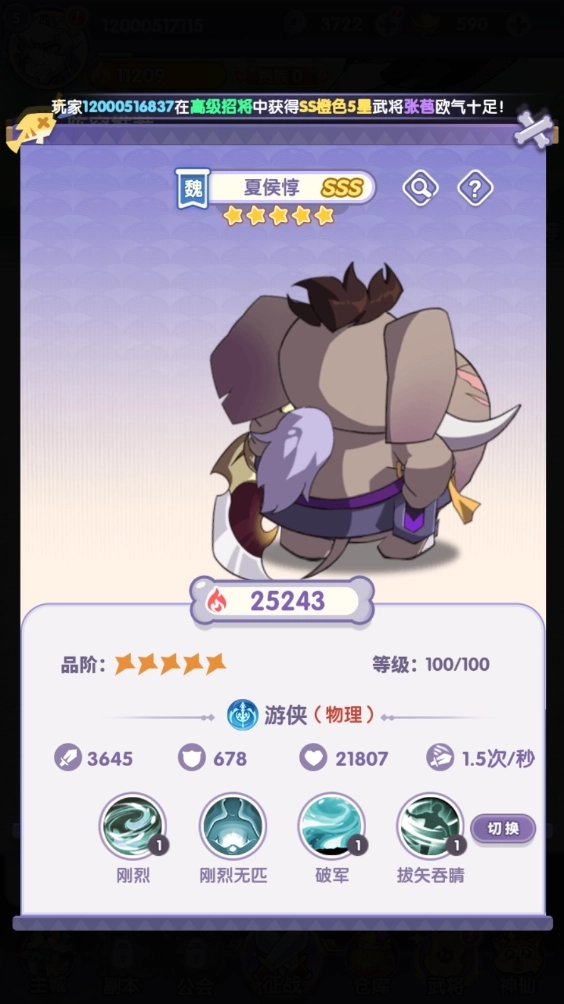 5、在武将界面可查看已拥有的武将,点击对应武将便能进入其详情页面。