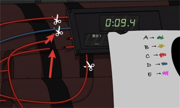 4.当剪断前三条线之后,倒计时便会停止,这表明炸弹已被顺利拆除。
