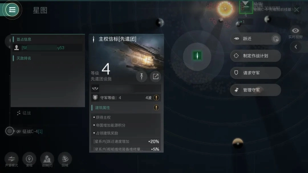 通过设施管理系统,可以查看个人和先遣团的设施,可以对设施查看和管理。先遣团的设施管理,需要先遣团的职位权限。你也可以派遣自己的舰船去防守自己的设施,同时,当该舰船返回,或者是被击毁时,该舰船的蓝图会获得少量的经验。