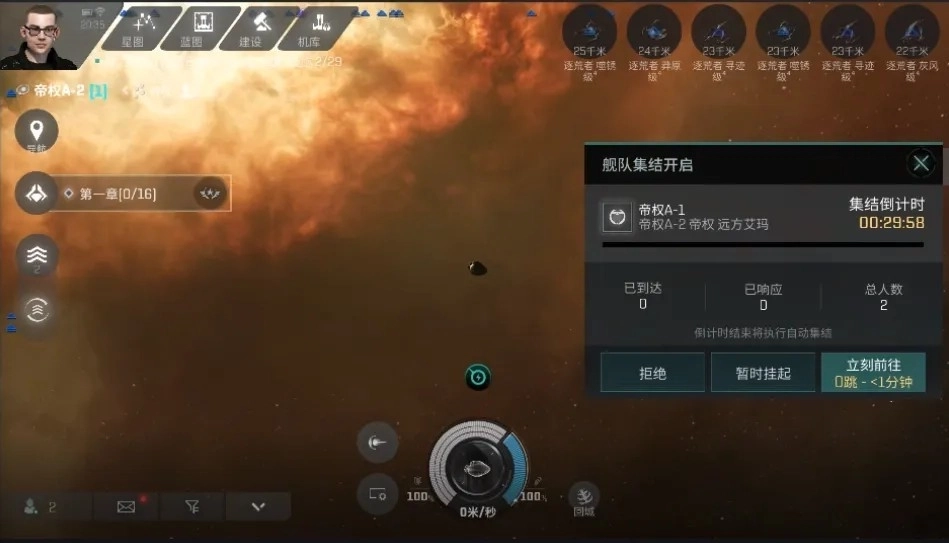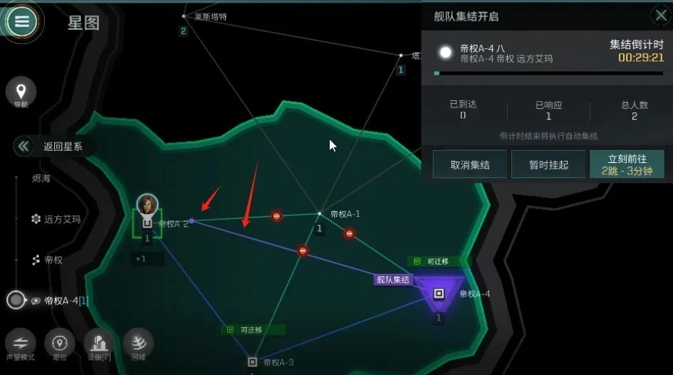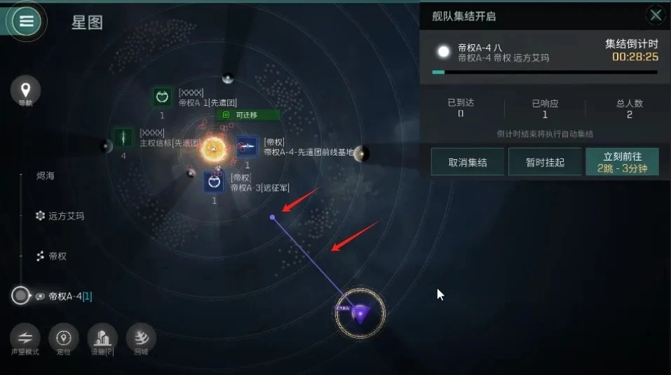 舰队长发起集结后,可以看到响应人数和到达人数。