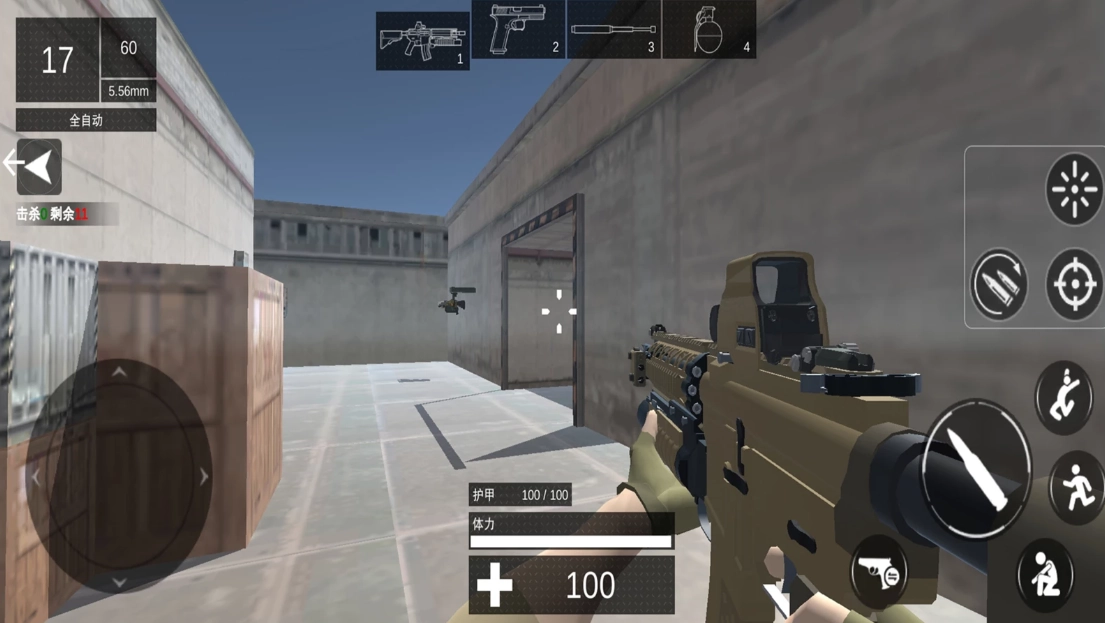 CQB三角战术部队是一款精彩的射击闯关游戏,拥有丰富多样的关卡与地图。玩家可挑选合适的武器装备加入战斗,完成各项作战任务、精准消灭目标。游戏采用真实的第一人称场景模拟,代入感十足,能充分展现你的射击实力!
