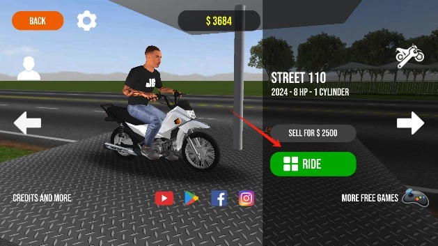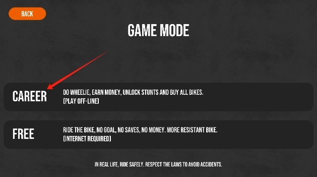 职业模式需购买专属摩托车方可开启比赛,好在首次进入游戏完成教程后能获得八千多金币,用来买一辆摩托车是完全足够的。