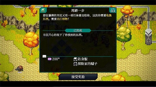1、这个任务能让玩家拿到几件不错的防具奖励,属于前期可快速完成的任务,要求玩家收集一些素材,难度不高,推荐尽早做完。