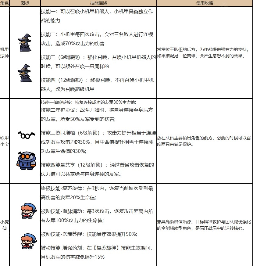 目前来看,红龙是兼顾输出与坦度的首选,忍者凭借出其不意的特性位居第二。剩下的选择或许是小宝,但考虑到资源有限,全力强化一个角色已属不易,小宝的优先级不高,升到3级就足够了,不如把资源集中在培养更多强化后的角色上。