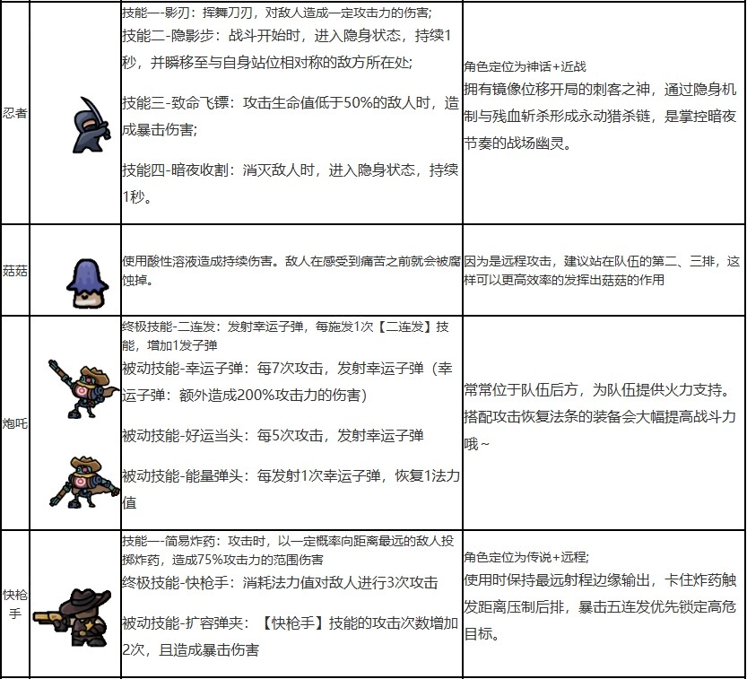 菇菇森林全角色攻略