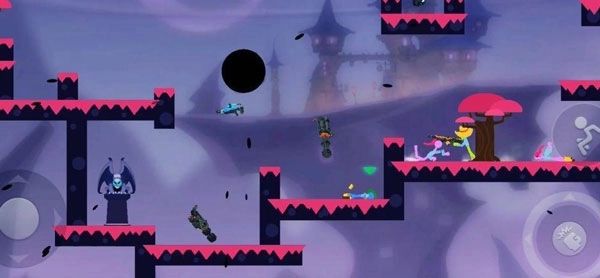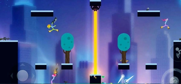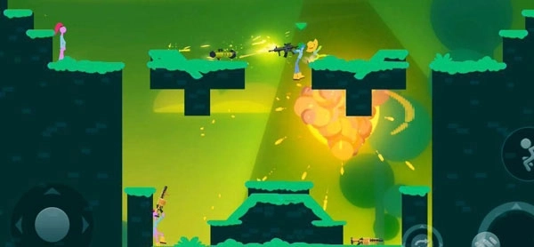 在游戏场景里,火柴人借助拾取掉落的武器以及利用地形的变化,与其他玩家展开战斗并将其击败,从而赢得胜利。