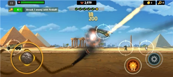 3、你得持续攻击上方的动物、人类,还有汽车、飞机这类人类社会的文明造物,或是拾取炸弹、兴奋剂之类的奖励来提升战斗力,同时获取击杀经验值进而升级。