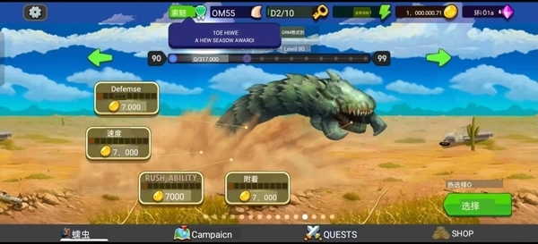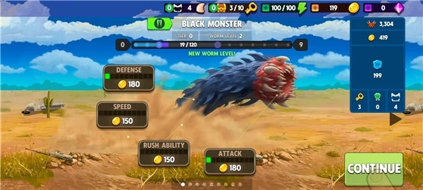 6、对蠕虫的不同部位开展升级操作,能够让它拥有更为强大的能力;