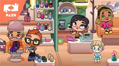 进入游戏后,能看到不少建筑,比如外形像剪刀的那个,其实是家理发店,点击进入就能开始游玩了。