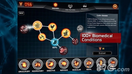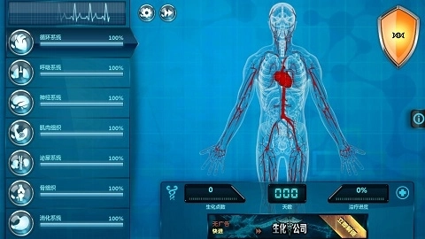 当某个系统的健康值被破坏至0%时,即便不对其他身体系统发起攻击,它们的健康百分比也会随之下降,具体的衰减情况需结合不同关卡的人体状态来参考。在游戏前期的几关中,优先针对神经系统、心肺系统或肠胃系统展开攻击,就能较为轻松地通关。
