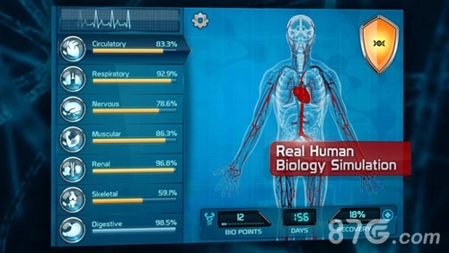 游戏设有八大系统(与人体的系统相对应):循环系统(Circulatory)、呼吸系统(Respiratory)、神经系统(Nervous)、肌肉系统(Muscular)、肾脏系统(Renal)、骨骼系统(Skeletal)、消化系统(Digestive)以及免疫系统(IMMUNE)。