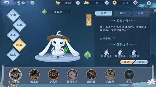 最后就是关于宠物的获取方式了,不同的宠物获取方式不同。比如教主猫,虽然是珍品品级的宠物,可以通过撸猫活动就可以获得。又像是橘小渔这种良品宠物,可以在商店购买,技能和属性还算可以,范围型伤害还可以增加玩家的战斗力,宠物真的是行走江湖必备的神器。