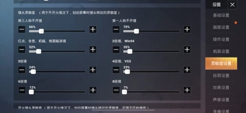 系统推荐【中级】灵敏度,(选择低、中、高,恢复至对应的灵敏度)