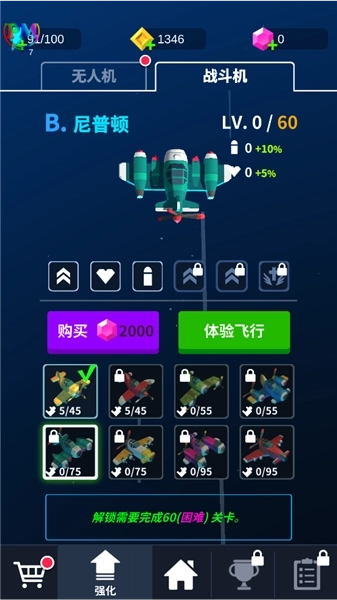 2、多种战斗机和无人机,请通过升级和进化获得新技能。